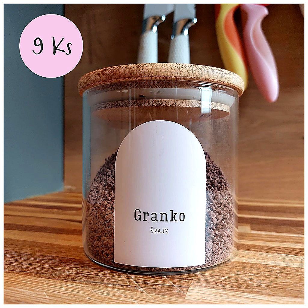 - Samolepky nejsou určeny pro přímý styk s potravinami – neumisťujte je dovnitř nádob nebo na plochy, kde se přímo nachází jídlo. Na vnější označení dóz jsou vhodné.